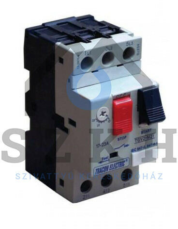 Kézi működtetésű motorvédő kapcsoló. 9-14A, 5,5kW. Villamos motorok be- és kikapcsolására, valamint túlterhelés elleni védelemre szolgálnak. A védőkapcsoló fáziskimaradás esetén is védelmet nyújt a motor túlmelegédése ellen. Normál, kézzel működtethető mechanikus szerkezettel kapcsolható be és ki. A védendő motor névleges üzemi áramát a készülék beállít