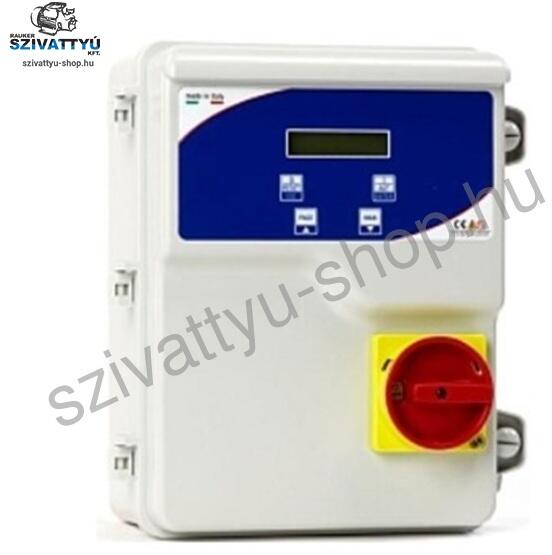 MAC3 Dry Control Plus 400V Közvetlen indítású elektronikus motorvédelem szivattyúkhoz, szárazon futás védelemmel (cosφ és minimum áramerősség), kijelzővel, általános megszakító kapcsolóval és ajtózárral. MAC3 Dry Control Plus a megbízható 400V-os motorvédelem. A szivattyú motorjának áramfelvétel védelmet nyújt, amely szabályozható, valamint a cosφ-t figyelve véd