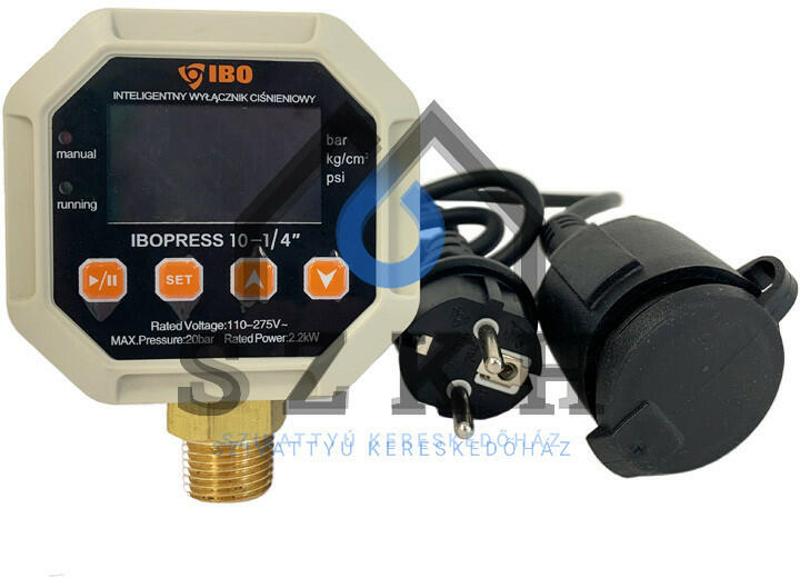 Digitális szivattyú vezérlő túlterhelés elleni védelemmel és szárazon futás elleni védelemmel. Az IBOPRESS 10 egyfázisú szivattyúk működésének vezérlésére szolgál, maximum 20A és 2200 W teljesítményű motorokhoz. Az IBOPRESS 10 biztonsági funkciókkal rendelkezik - lehetővé teszi a maximális megengedett áramfelvétel beállítását és védi a szivattyút a szárazon