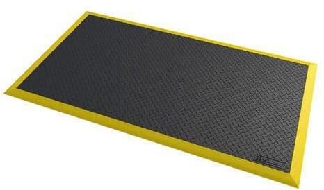 Diamond Flex fáradásgátló és antisztatikus ESD gumiszőnyeg. Kényelmes platform vastagsága 18,4 mm, enyhén megemelve elszigeteli a személyt a padlótól. Az alatta lévő gömbkupolák lehetővé teszik, hogy a szőnyeg minden mozdulatnál hajoljon és hajlítson. Függetlenül áll és nem igényel telepítést.