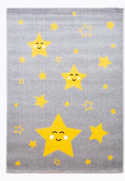 Vidám, csillag mintás szőnyeg szürke alapszínnel. Puha tapintású, kellemes érintésű szőnyeg, melyen gyermeke is szívesen játszana. Antiallergén, padlófűtés esetén is használható, színét hosszútávon megőrzi. Kereskedelmi forgalomban kapható általános szőnyegtisztító készítménnyel vagy szappanos vízzel tisztítható. Szélesség: 160 cm Hosszúság: 230 cm Anyag: 1