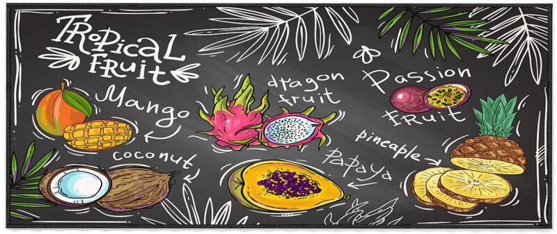 Oyo Home szőnyeg, 100% poliészter, 80x150cm, Gyümölcsök - A szőnyegtisztítás során kerülni kell a felesleges víz és sampon használatát. - Soha ne használjon fehérítőt vagy hasonló kémiai fehérítőket a szőnyeg mosása során. Mossa ki a szőnyeget a TSE szerinti mosószerrel és kondicionálóval. - A szőnyegre kiömlött foltképző anyag azonnal és megfelelő beavatkozá