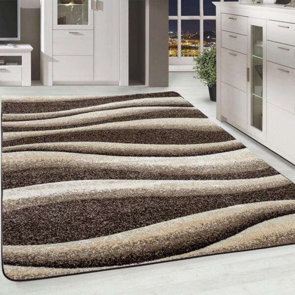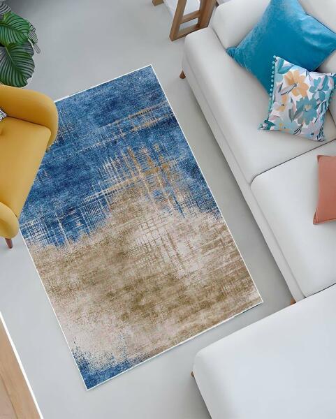 Dobja fel lakberendezését ezzel a modern, dinamikus, abstract stílusú kék és bézs szőnyeggel. Ez a szőnyeg egy csipetnyi modern kifinomultságot kölcsönöz minden helyiségnek, és stílusos fókusz pontként szolgál. Kiváló minőségű anyagokból készült, tartósságot és kényelmet biztosítva, így ideális nappaliba, hálószobába vagy irodába. A sokoldalú dizájn számos