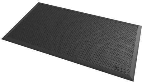 Diamond Flex fáradásgátló és antisztatikus ESD gumiszőnyeg. Kényelmes platform vastagsága 18,4 mm, enyhén megemelve elszigeteli a személyt a padlótól. Az alatta lévő gömbkupolák lehetővé teszik, hogy a szőnyeg minden mozdulatnál hajoljon és hajlítson. Függetlenül áll és nem igényel telepítést.