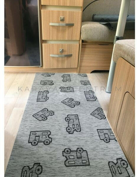 Lakótérben történő használatra készült strapabíró, bármilyen hosszúságúra vágható beltéri szőnyeg. Hátoldala csúszásmentes bevonattal készült, 30 °C-on mosható. Anyag: felső réteg pamut és poliészter Hátoldal: 100% PVC Méret: 150 x 52 x 0,5 cm Szín: szürke