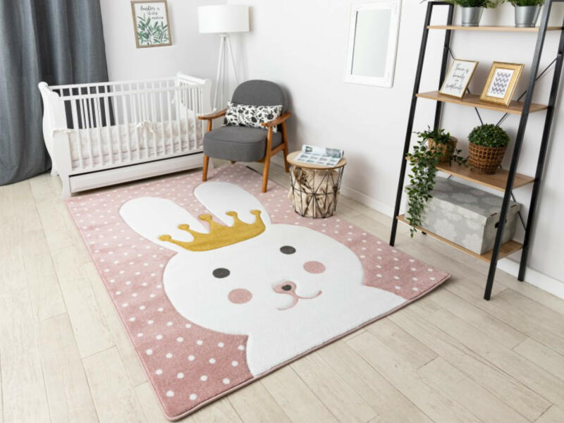 Egy aranyos puha szőnyeget keres kislánya gyerekszobájába? Akkor figyelmébe ajánljuk ezt az édes rózsaszín pöttyös nyuszi mintás gyerekszőnyeget, amely feldob minden gyerekszobát. A 2500 g/m2 szálsűrűséggel és 13 mm szálhosszúsággal rendelkező szőnyeg tökéletes választás. A polipropilén (PP) szálaknak rendkívüli a puhasága és a rugalmassága, főként a hőkezelé