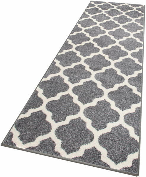 Szürke és fehér mintás gyönyörű Marine futószőnyeg, amely 2200 g/m2 polipropilén Frieze típusú szálakból készült 10 milliméteres szálmagassággal. A polipropilén szálak igazán puhák és rugalmasak. A szőnyeg nem deformálódik, ellenálló a kikopással szemben és könnyen tisztítható. Modern geometrikus designnal rendelkezik. Tökéletes konyhai, előszoba vagy folyosó