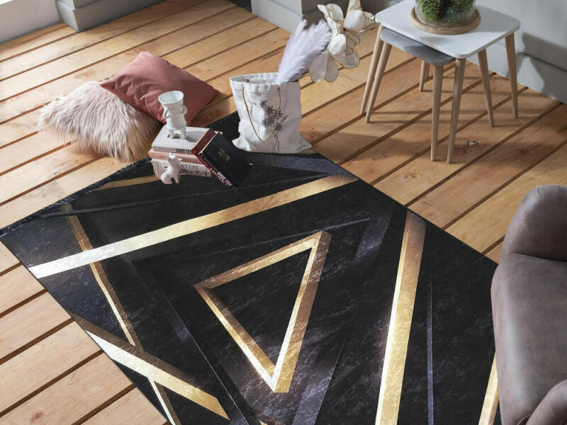 Gyönyörű BILD arany - kék csúszásgátlós szőnyeg, amely biztosítja a biztonságát és a kényelmét. A 3D minta mindenkit első látásra lenyűgöz. Az elegáns kék szőnyeg a legjobb minőségű anyagokból készül, melynek köszönhetően nagyon strapabíró és ellenálló. Olyan helyre is elhelyezheti, ahol sok ember jár-kel, ugyanis könnyen mosógépben mosható. PARAMÉTEREK: