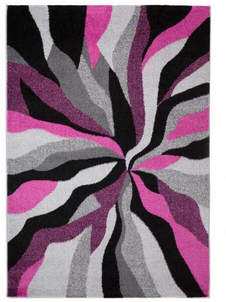 Modern mintázatú fiatalos szőnyeg. Több méretben és színvariációban is kapható. Padlófűtés esetén is használható, könnyen tisztítható, antisztatikus, antiallergén, színét hosszú távon megőrzi. Szélesség: 160 cm Hosszúság: 230 cm Szín: Lila-fekete-szürke Anyag: 100% Polipropilén (PP) Hátlap: Juta Szálhosszúság: 11-12 mm