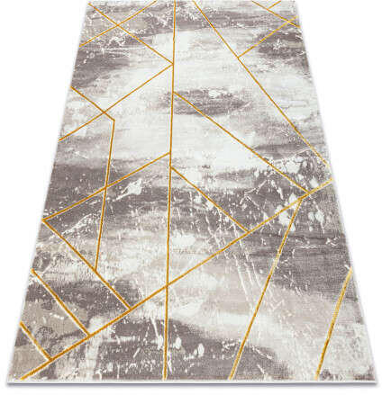 Hozza otthonába az eleganciát és a modern stílust a szürke-arany téglalap alakú Miro szőnyegünkkel. Ez a szőnyeg ideális kiegészítő minden helyiségbe, köszönhetően absztrakt dizájnjának és finom színeinek, amelyek kifinomult megjelenést kölcsönöznek a térnek. Kiváló minőségű poliészterből készült, a szőnyeg nemcsak tartós, hanem kellemes tapintású is. Csúsz