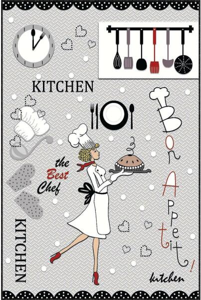 Oyo Home konyhaszőnyeg, Chef modell, 120x180 cm, poliészter, digitális nyomtatás, csúszásmentes hátlap, többszínű Csúszásmentes alapon, 100% poliészter. Ezek a szőnyegek, amelyeket az Ön otthoni dekorációjának megfelelően terveztek, gyönyörű és divatos színekkel, könnyen száradnak és nem büdösek. Digitálisan nyomtatott. Tisztítási utasítások: - A termék gépben m