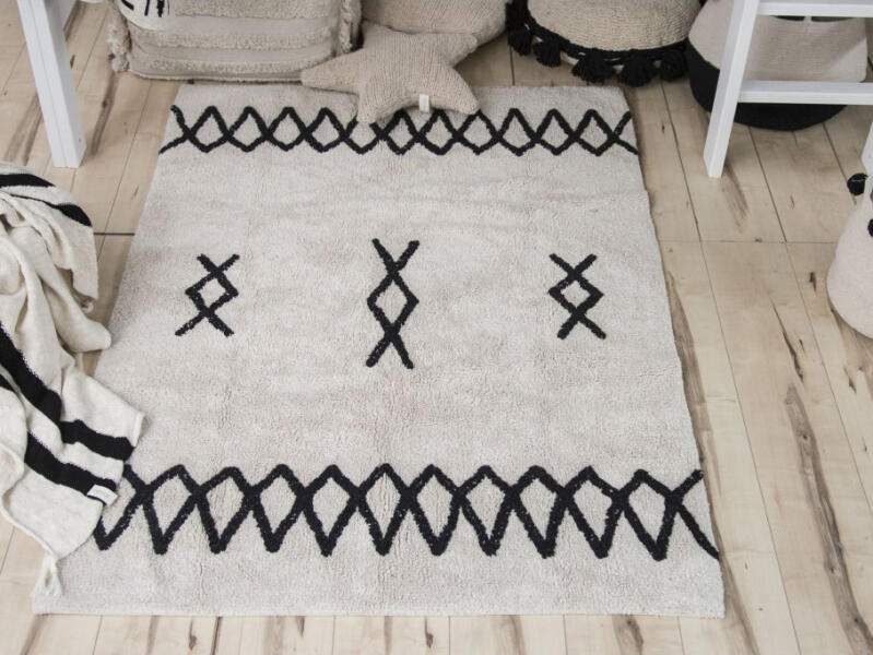 ATLAS szőnyeg tökéletesen illik minden enteriőrbe. Mivel univerzális, ezért tökéletesen illik a hálószobába, nappaliba, gyerekszobába vagy akár az ifjúsági szobába is. A szőnyeg fekete szép mintával van díszítve és 120x160 cm méretben kapható. Ezzel a szőnyeggel minden szoba otthonosabbá válik. A szőnyeg mosógépben is mosható, aminek minden anyuka csak örülni fog.