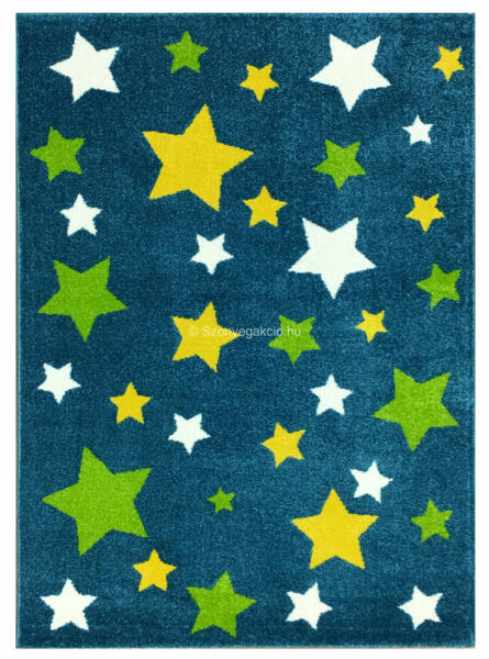Színes, vidám csillagmintás szőnyeg kék alapszínnel. Puha tapintású, kellemes érintésű szőnyeg, melyen a gyermekek szívesen játszanak. Száltípus: friese szőnyeg Súly: 2000 gr/nm Anyag: 100% polipropilén - Antiallergén - Padlófűtés esetén is használható - Könnyen kezelhető - Tartós szín Az alábbi méretekben vásárolható: Kereskedelmi forgalomban kapható általáno