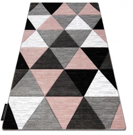Adjon otthonának modern és stílusos elemet a Rino rózsaszín szőnyegünkkel. Ez a szőnyeg geometrikus háromszögekkel van tervezve, amelyek dinamikát és eleganciát kölcsönöznek a szobájának. Polipropilénből készült, tartós és könnyen karbantartható. Téglalap alakja és finom rózsaszín árnyalatai tökéletesen illeszkednek bármely belső térbe, legyen az nappali, háló