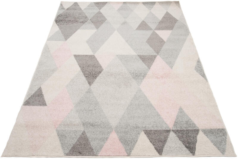 Lágy színekkel és geometrikus mintával díszített modern szőnyeg a klasszikus és a modern otthonokba egyaránt. A designjának köszönhetően tökéletes nappali, hálószoba vagy gyerekszoba szőnyeg lehet. Az 1400 g /m2 sűrűségű és 8-9 milliméter hosszú szálakkal rendelkező színes szőnyeg gyönyörű geometrikus mintával díszített. A polipropilén szálak kiemelkedő puhas