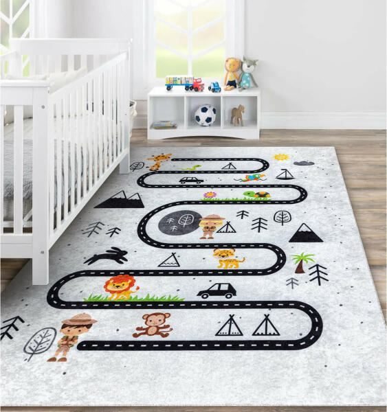 A kis felfedezőknek tökéletes választást jelenthet ez a szép és minőségi csúszásgátlós FELFEDEZŐK gyerekszőnyeg. Ez a szürke szőnyeg nem csak egy gyönyörű dísze lesz a gyerekszobának, de praktikus kiegészítő is. A közlekedési szőnyegnek is tekinthető szőnyeg tökéletes és puha helyet biztosít gyermekeinek a játékra és a szórakozásra. A rövid szálú szőnyeg