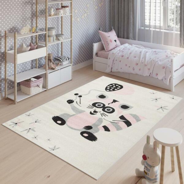 Fehér színű gyerekszoba szőnyeg, állatkával, kiváló minőségű anyagból és a legújabb divatirányzatok szerint tervezve.