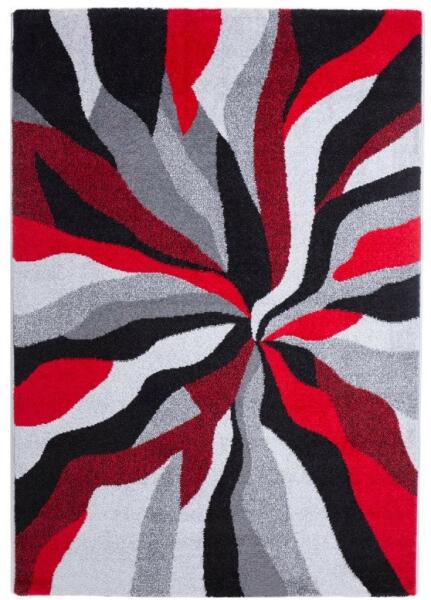 Modern mintázatú fiatalos szőnyeg. Több méretben és színvariációban is kapható. Padlófűtés esetén is használható, könnyen tisztítható, antisztatikus, antiallergén, színét hosszú távon megőrzi. Szélesség: 160 cm Hosszúság: 230 cm Szín: Piros-fekete-szürke Anyag: 100% Polipropilén (PP) Hátlap: Juta Szálhosszúság: 11-12 mm