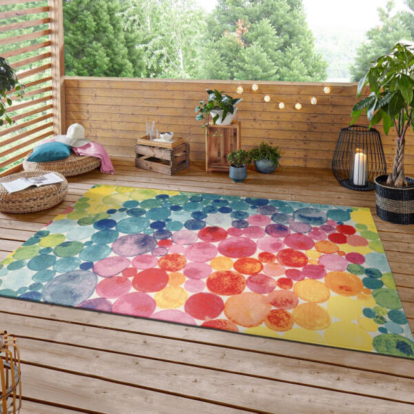 A Taleta Sunshine kültéri szőnyege egyaránt alkalmas teraszra, erkélyre, kertbe. UV- és vízálló, könnyen tisztítható. A modern szőnyegek élénk színeikkel és népszerű mintáikkal feldobják verandádat és teraszodat. Méret: 120 cm x 170 cm 100% polipropilén 100% polipropilén: A Taleta Sunshine sorozat kültéri szőnyegének anyaga speciális kezelést kapott. UV- és vízál