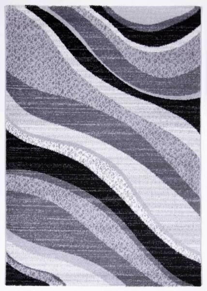 Modern mintázatú fiatalos szőnyeg. Több méretben és színvariációban is kapható. Padlófűtés esetén is használható, könnyen tisztítható, antisztatikus, antiallergén, színét hosszú távon megőrzi. Szélesség: 80 cm Hosszúság: 150 cm Szín: Fekete-szürke Anyag: 100% Polipropilén (PP) Hátlap: Juta Szálhosszúság: 11-12 mm
