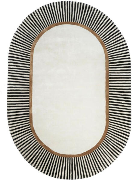 Prémium kollekciónk Amber szőnyege, leginkább egy mesebeli elegáns ovális tükörhöz hasonlít fekete és mogyóróbarna vonalmintás keretével. Letisztult, előkelő bézs, fekete és mogyoróbarna színeivel, prémium minőségű bársonyos felületével tökéletes választás. Harmónikus színek, letisztult minták és puha felület jellemzik kézi csomózású szőnyegeink legújabb