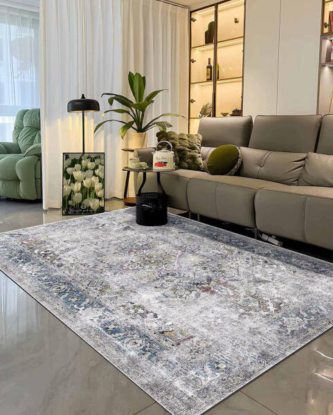 Bemutatjuk distressed vintage stílusú szőnyegünket – az elegancia és a modern báj tökéletes keverékét! Ez a szőnyeg gyönyörűen kifakult medalion mintával rendelkezik a kékek, zöldek és rózsaszínek harmonikus keverékében. Kifinomultságot és karaktert kölcsönöz minden helyiségnek, ideális nappaliba, hálószobába vagy étkezőbe. Tartós anyagokból készült, könny