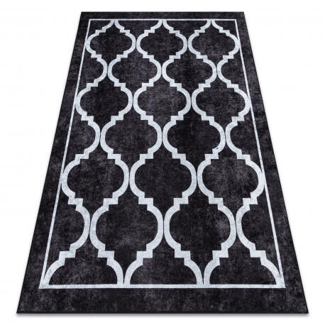 A Miro Trellis téglalap alakú szőnyeg 100% poliészterből készült, ami garantálja hosszú élettartamát és kopásállóságát. Csúszásmentes felületének köszönhetően bármilyen felületen biztonságos, így ideális a konyhában, fürdőszobában vagy a folyosón való használatra. Elegáns fekete dizájnja rácsos mintával kifinomult megjelenést kölcsönöz a térnek. A szőn