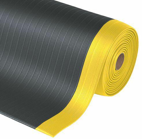 Airug® Plus fekete/sárga színű habszivacs ergonomikus fáradásgátló szőnyeg bordázott mintázattal a fokozott tapadásért. Ideális az álláshoz a 9,4 mm vastag, milliónyi légbuborékból álló mikrocellás kialakításának köszönhetően. Feldolgozó üzemekben, szerelősorokon, csomagolóüzemekben, logisztikai raktárakban és egyéni munkaállomásokon történő telepítéshez