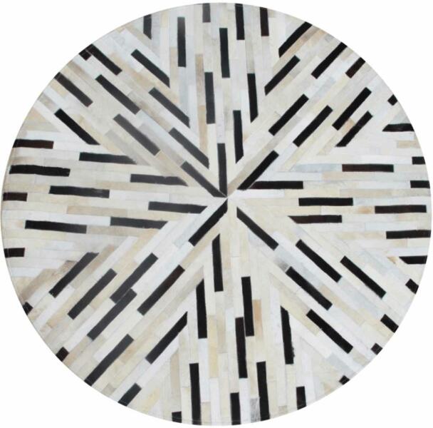 Kör alakú luxus bőrszőnyeg TIP 8, marhabőrből készült patchwork technikával. Nemezzel erősítve. Méretek (SzéxHo): 200x200 cm Szőnyeg magassága: 0,8 cm