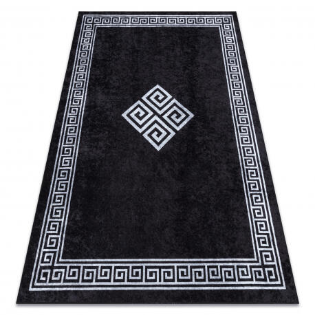 A Miro Start szőnyeg görög csúszásmentes kerettel van tervezve, amely garantálja a biztonságot és stabilitást bármilyen felületen. 100% poliészterből készült, kivételes tartósságot és egyszerű karbantartást kínál, mivel egyszerűen mosható mosógépben. Fekete és fehér színkombinációja modern és stílusos megjelenést kölcsönöz a belső térnek, míg téglalap alak