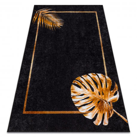 Miro szőnyeg arany levelek kiemelkedik modern dizájnjával, amely levélmintával és fekete-arany színkombinációval rendelkezik, ami luxus érzetet kölcsönöz a térnek. 100% poliészterből készült, a szőnyeg nemcsak esztétikailag vonzó, hanem praktikus is, mivel egyszerűen mosható mosógépben. Csúszásmentes kerete biztonságot és stabilitást garantál bármilyen felületen,