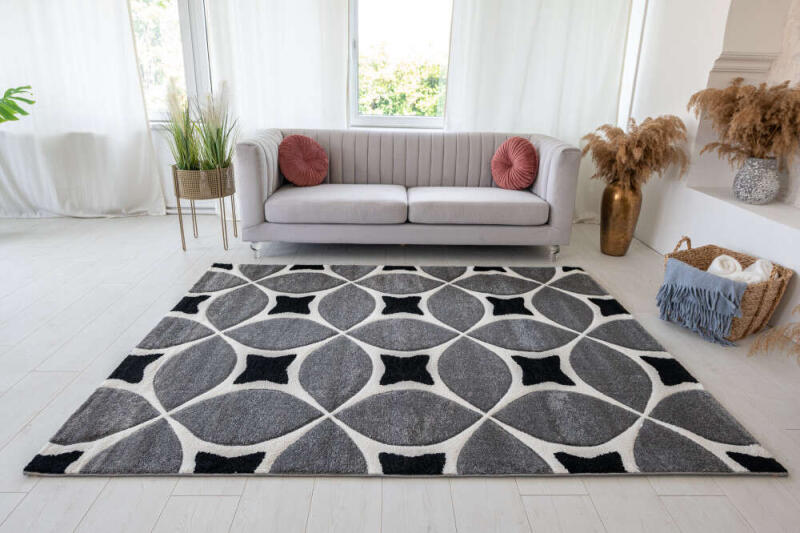 A BERTY hosszú futószőnyeg egy stílusos és praktikus kiegészítő minden otthonba. A fekete - fehér színének és a geometrikus mintának köszönhetően kellemes elegáns hatást kölcsönöz minden szobának. Ez a szőnyeg nem csak egy gyönyörű dekorációs elem, de egy megbízható és praktikus darab is, amely otthonát még kényelmesebbé és otthonosabbá varázsolja. A szőnyeg
