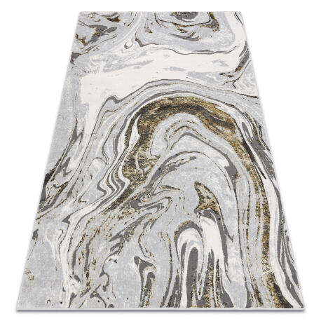 A Lira szőnyeg tökéletes kiegészítője a modern belső térnek, amely absztrakt dizájnt ötvöz glamour elemekkel elegáns szürke és arany árnyalatokban. Ez a szőnyeg kiváló minőségű polipropilénből és poliészterből készült, ami garantálja hosszú élettartamát és kopásállóságát. Kb. 10 mm vastagságának köszönhetően kellemes érzést nyújt a lábak alatt, és ho