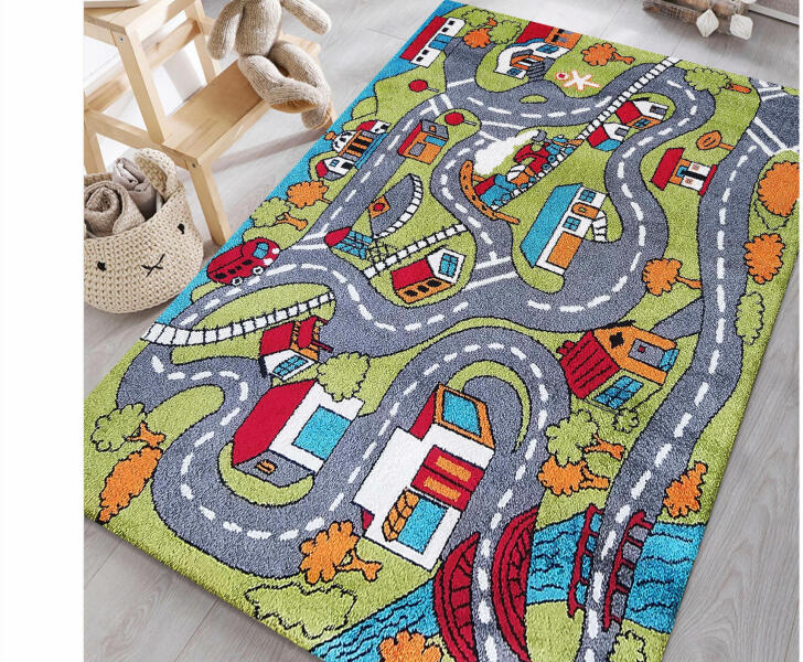 Utca mintás gyerekszőnyeg, amely tökéletes választás minden gyerekszobába. Minőségi 100 % polipropilén Heat Set Frisé. A közlekedés gyerekszoba szőnyeg nagyon kellemes tapintású és könnyen tisztán tartható. A rugalmas szálaknak köszönhetően a szőnyeg nem deformálódik és ellenálló a kikopással szemben. A szőnyeg megfelel minden higiéniai előírásnak és nem tartal