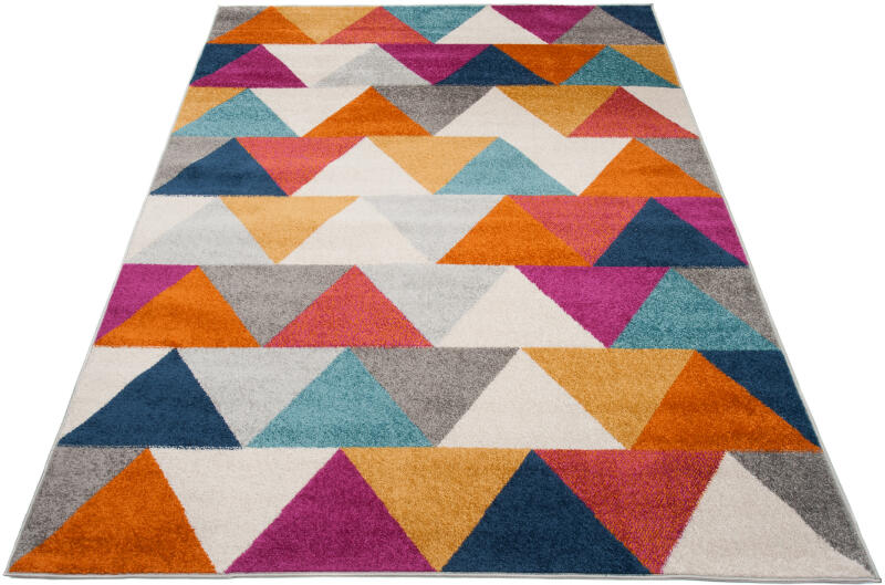 Gyönyörű színes szőnyeg, amely a designjának köszönhetően tökéletes nappali, hálószoba vagy gyerekszoba szőnyeg lehet. Az 1400 g/m2 sűrűségű és 8-9 milliméter hosszú szálakkal rendelkező színes szőnyeg gyönyörű geometrikus mintával díszített. A polipropilén szálak kiemelkedő puhaságúak és rugalmasságúak a hőmegmunkálásnak köszönhetően. A gyöngyházfén
