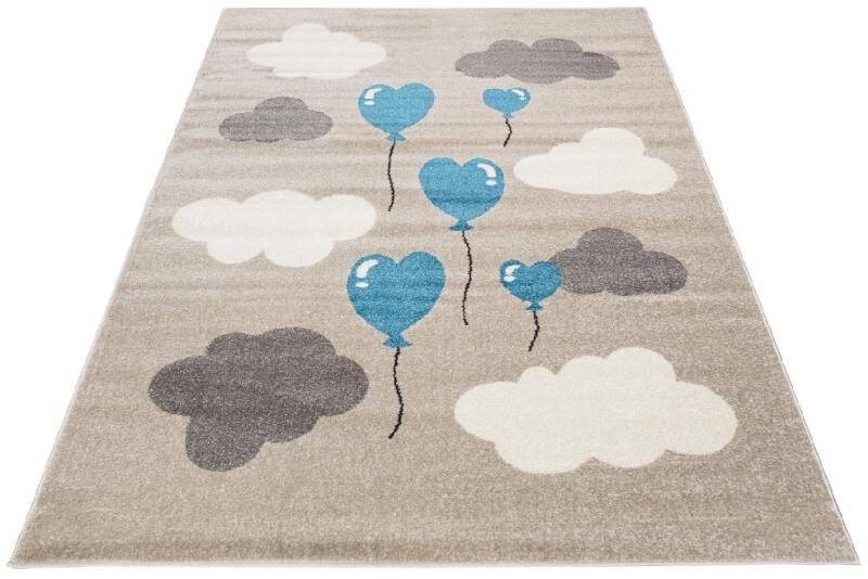Gyönyörű színes gyerekszőnyeg, amely elbűvöl minden gyereket. A bézs színű szőnyeg felhőkkel és kék lufikkal díszített. Biztosítja majd gyermeke kényelmét játszás során. A szőnyeg könnyen tisztítható és ellenálló a vízzel szemben. A szőnyegen található minta ételfestékkel van rányomva. PARAMÉTEREK: Anyaga: 100% PVC AZO színezőanyagok nélkül Szín: ballonok,