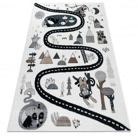 A Mode Modern szőnyeg tökéletes kiegészítője minden modern belső térnek, amely az elegancia és a funkcionalitás összekapcsolását keresi. Ez a szőnyeg krém és fekete színű geometriai mintájával tűnik ki, amely dinamikát és stílust kölcsönöz a térnek. 100% poliészterből készült, kivételes tartósságot és egyszerű karbantartást kínál, ami ideálissá teszi gyerm