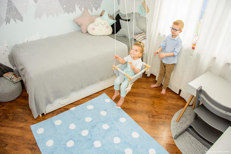 A TOPOS Blue kék szőnyeg igen elegáns és egyben játékos a fehér pöttyeinek köszönhetően. Ez a kézzel készült szőnyeg nem csak a dizájnjával, de a kidolgozottságával és az összetételével is lenyűgözi majd. A szőnyeg 100 % pamutból készült. A szőnyeg megfelelő választás nem csak a gyerekszobába, de a nappaliba vagy a hálószobába is. A modern kinézetén kívül n