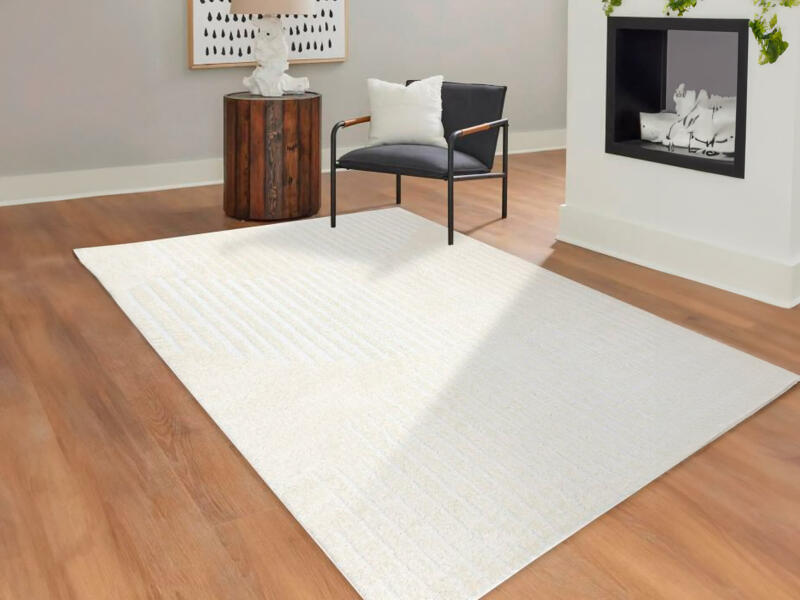 A modern szőnyeg MODE 8631 geometrikus krémszínű ideális kiegészítő minden modern belső tér számára, amely az elegancia és a funkcionalitás ötvözését keresi. Ez a szőnyeg 100% poliészterből készült, ami garantálja hosszú élettartamát és kopásállóságát. Vastagságának köszönhetően +/- 15 mm kellemes érzést nyújt járás közben, és hozzájárul a helyiség h