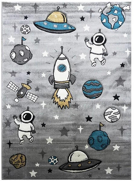 A Smart Kids 22924 grey - Űrhajós szürke gyerekszőnyeg tökéletes kiegészítője lehet kicsik szobájának, játszósarkának vagy bármelyik másik helyiségének. A szőnyeg mérete 120x180 cm, amely elegendő teret biztosít a kicsiknek a játékhoz és a tevékenységekhez. Az űrhajós minta nem csak aranyos, de tudományos témájával és tervezésével elősegíti a kreativitást és