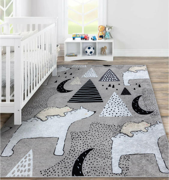 Egy új gyerekszőnyeg vásárlásán gondolkodik? Ez az aranyos gyerekszőnyeg, amely a medvemamát ábrázolja a bocsával egy aranyos és praktikus kiegészítő lehet a gyerekei szobájában. Gyermekei biztosan imádni fogják. A szőnyeg nem csak kényelmes helyet biztosít a játékhoz, de megvédi őket a hideg padlótól is. A szőnyeg 100 % poliészterből készül, amely allergiások sz