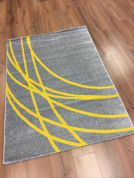 Fekete, szürke és sárga geometrikus mintával díszített modern szőnyeg a klasszikus és a modern otthonokba egyaránt. A designjának köszönhetően tökéletes nappali, hálószoba vagy gyerekszoba szőnyeg lehet. Az 1400 g/m2 sűrűségű és 8-9 milliméter hosszú szálakkal rendelkező színes szőnyeg gyönyörű geometrikus mintával díszített. A polipropilén szálak kiemelkedő p