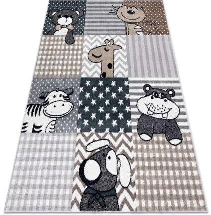Modern mintázatú fiatalos szőnyeg. Több méretben és színvariációban is kapható. Padlófűtés esetén is használható, könnyen tisztítható, antisztatikus, antiallergén, színét hosszú távon megőrzi. Szélesség: 80 cm Hosszúság: 150 cm Szín: Fekete-szürke Anyag: 100% Polipropilén (PP) Hátlap: Juta Szálhosszúság: 11-12 mm