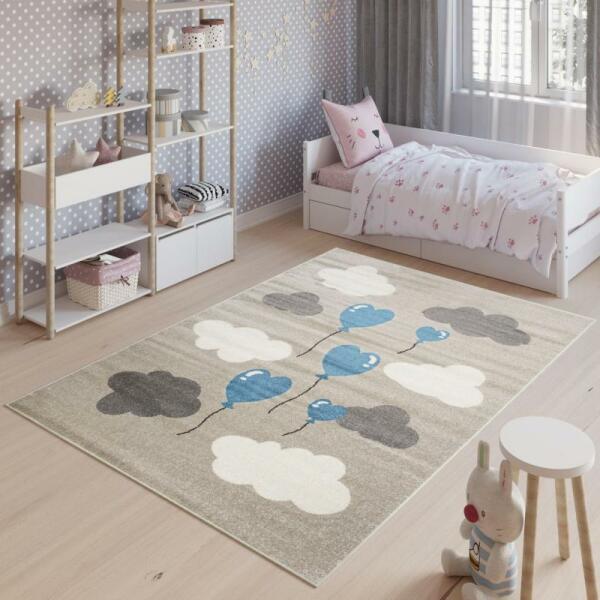 Bézs színű, gyerekszoba szőnyeg, lufikkal, kiváló minőségű anyagból és a legújabb divattrendek szerint tervezve.