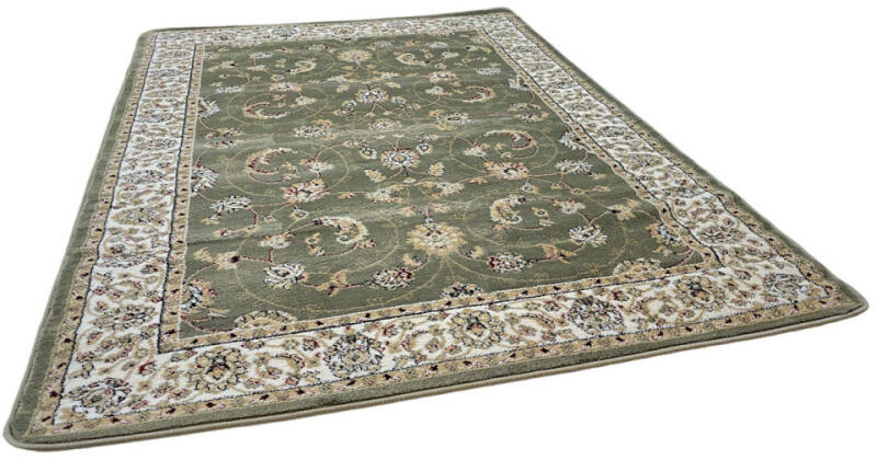 Klasszikus, elegáns mintázatú szőnyeg. Több méretben kapható. Antisztatikus, géppel szőtt, alkalmas padlófűtéshez, strapabíró szőnyeg. Színét hosszú távon megőrzi. Kereskedelmi forgalomban kapható általános szőnyegtisztító készítménnyel vagy szappanos vízzel tisztítható. Szélesség: 120 cm Hosszúság: 170 cm Anyag: 100% Polipropilén (PP) Hátlap: Juta Szálhossz