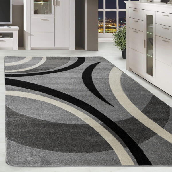 A Miro Elois szőnyeg 100% poliészterből készült, ami garantálja a hosszú élettartamát és a kopásállóságát. Csúszásmentes felületének köszönhetően biztonságos bármilyen helyiségben, beleértve a fürdőszobákat és a konyhákat is. Geometriai dizájnja szürke színnel kombinálva modern és elegáns megjelenést kölcsönöz, amely minden belső térhez illik. A szőnyeg