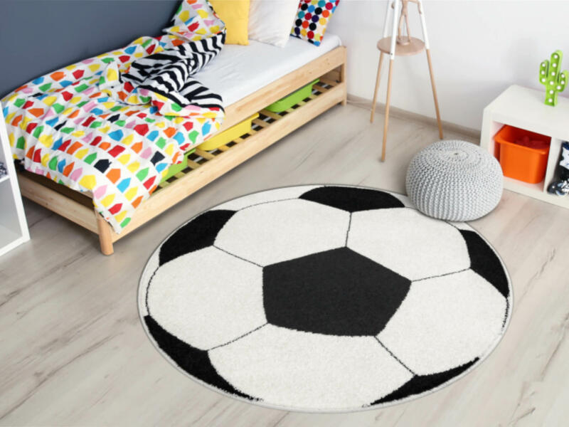 A LABDA kerek fekete-fehér szőnyeg tökéletes választás minden fiús gyerekszobába. Minden kis focirajongó imádni fogja. A szálak hossza 10 mm, melynek köszönhetően padlófűtéshez is megfelelő. A szálak sűrűsége 2000 g/m2. A polipropilén szálak nagyon puhák és rugalmasak a hőmegmunkálásnak köszönhetően, amelyen átesnek. A gyönyházas textúrájának köszönhetően a