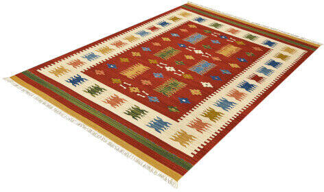 A Kelim classic egy klasszikus, azték mintájú szőnyeg, amely mind a klasszikus, mind a modern enteriőrt hangulatossá teszi. Szövőszéken kézzel szőtt szőnyeg a legjobb minőségű új-zélandi gyapjúból gyapjúfonaton. A szőnyeg halommagassága mindössze 2 milliméter, így padlófűtéses helyiségekbe is alkalmas. A szőnyeg két oldalán pamut rojtokkal van befejezve. A szőnyeg
