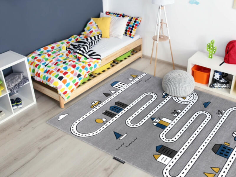 Minden gyerekszoba elengedhetetlen kiegészítője egy puha szőnyeg. Tökéletes helyet biztosít a játékra és a szórakozásra. Az aranyos városka - közlekedés mintás gyerekszőnyeget főleg fiús gyerekszobákba ajánljuk. A 2500 g/m2 szálsűrűséggel és 13 mm szálhosszúsággal rendelkező szőnyeg tökéletes választás. A polipropilén (PP) szálaknak rendkívüli a puhasága és