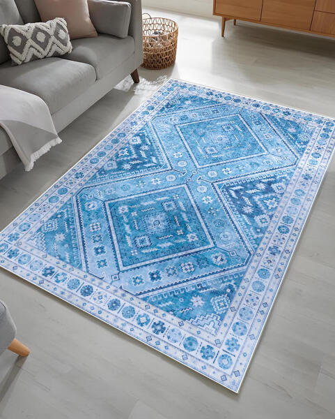 Fokozza belső dekorációját ezzel a feltűnő kék geometrikus szőnyeggel, részletgazdag gyémánt mintával, egy csipetnyi modern eleganciát kölcsönözve a térnek! Ez a szőnyeg kiváló minőségű anyagokból készült, biztosítva a tartósságot és a kényelmet a láb alatt, így tökéletes a modern stílusú terekbe és átjárókba. A magával ragadó kék árnyalatok kiegészít